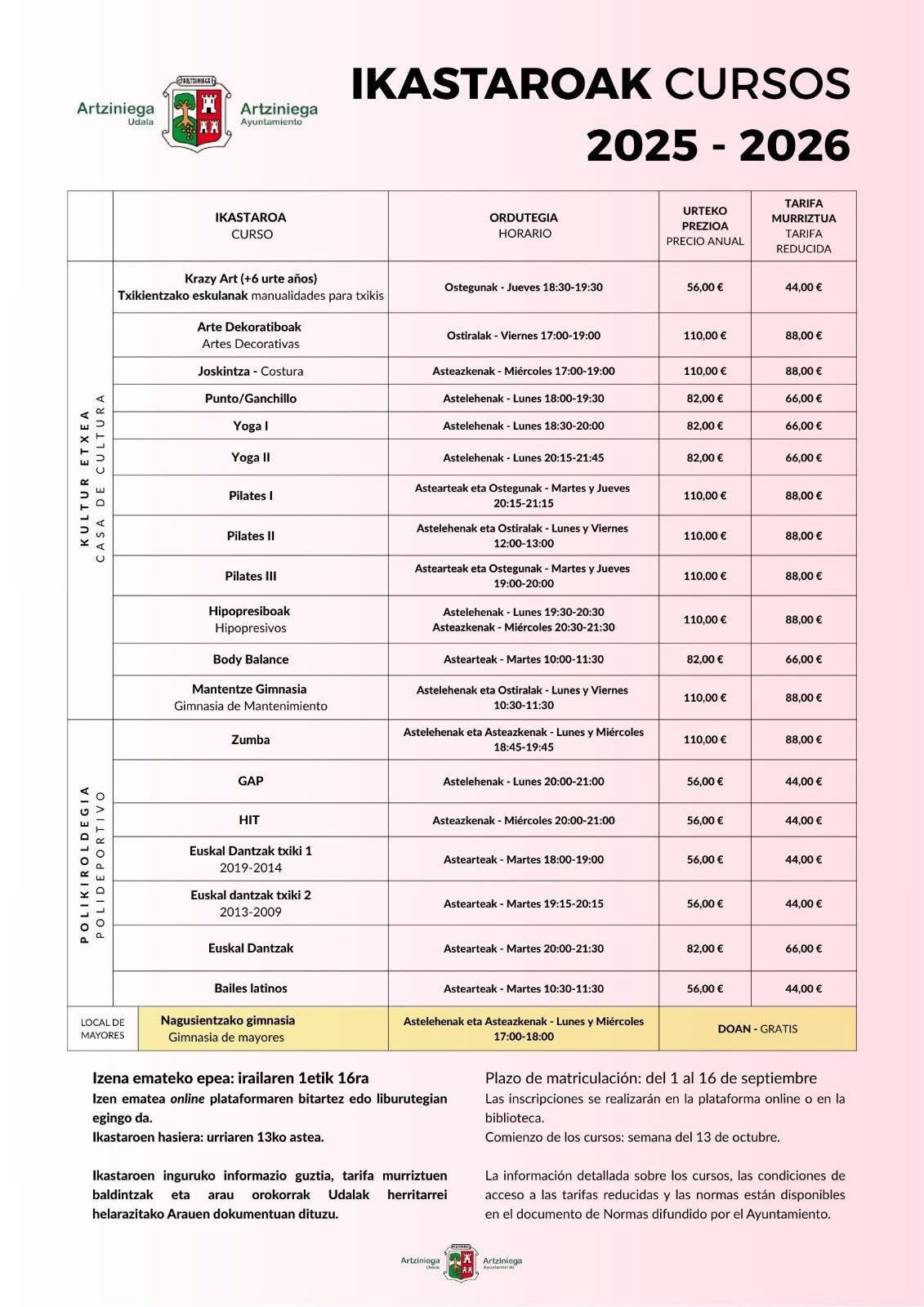 2025-2026 ikasturteetako matrikulazioa. Artziniega