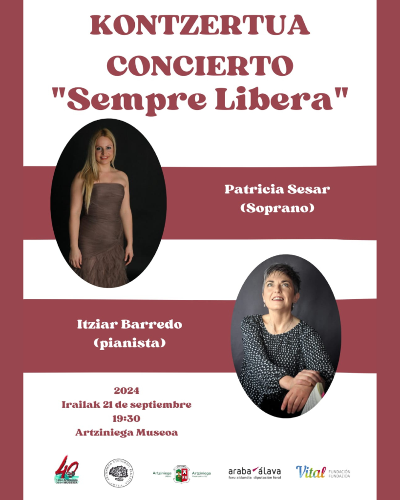 Datorren larunbatean, irailak 21, ez galdu "Sempre libera" kontzertua museoan. 19:30ean, Patricia Sesar sopranoak eta Itziar Barredo piano-jotzaileak musikaz eta emozioz beteriko gau ahaztezinaz gozatuko dute.