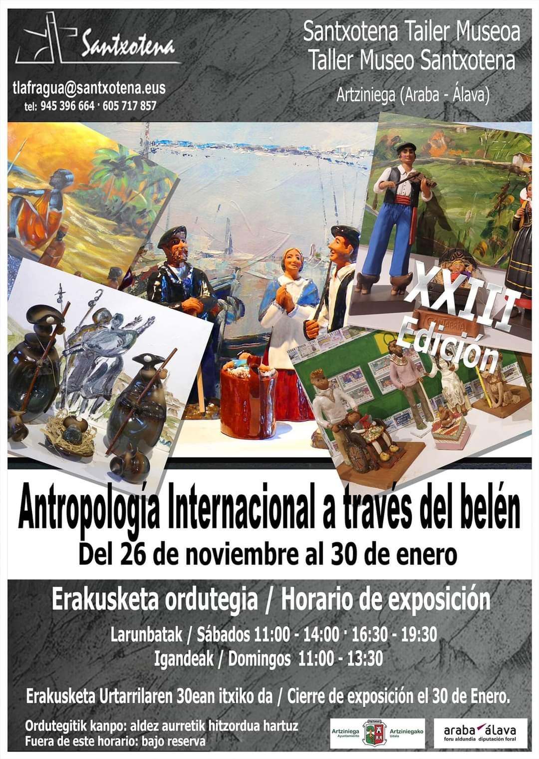 “ELTZEGINTZA ETA ZERAMIKARI OMENALDIA” Santxotena Museoko tailerra Artziniegan. Aurten, XXIII. edizioan, bost kontinenteetako 2.273 jaiotzak izango dira. Edizio honetan, QR kodeak nobedadea izango da, “azalpenak euskaraz eta gaztelaniaz” izango dira eta espazio irekiagoak izango dira. Haur-sekzioan idazmahai zahar bat jarri dugu, jaiotzak margotzeko eta etxera eramateko.